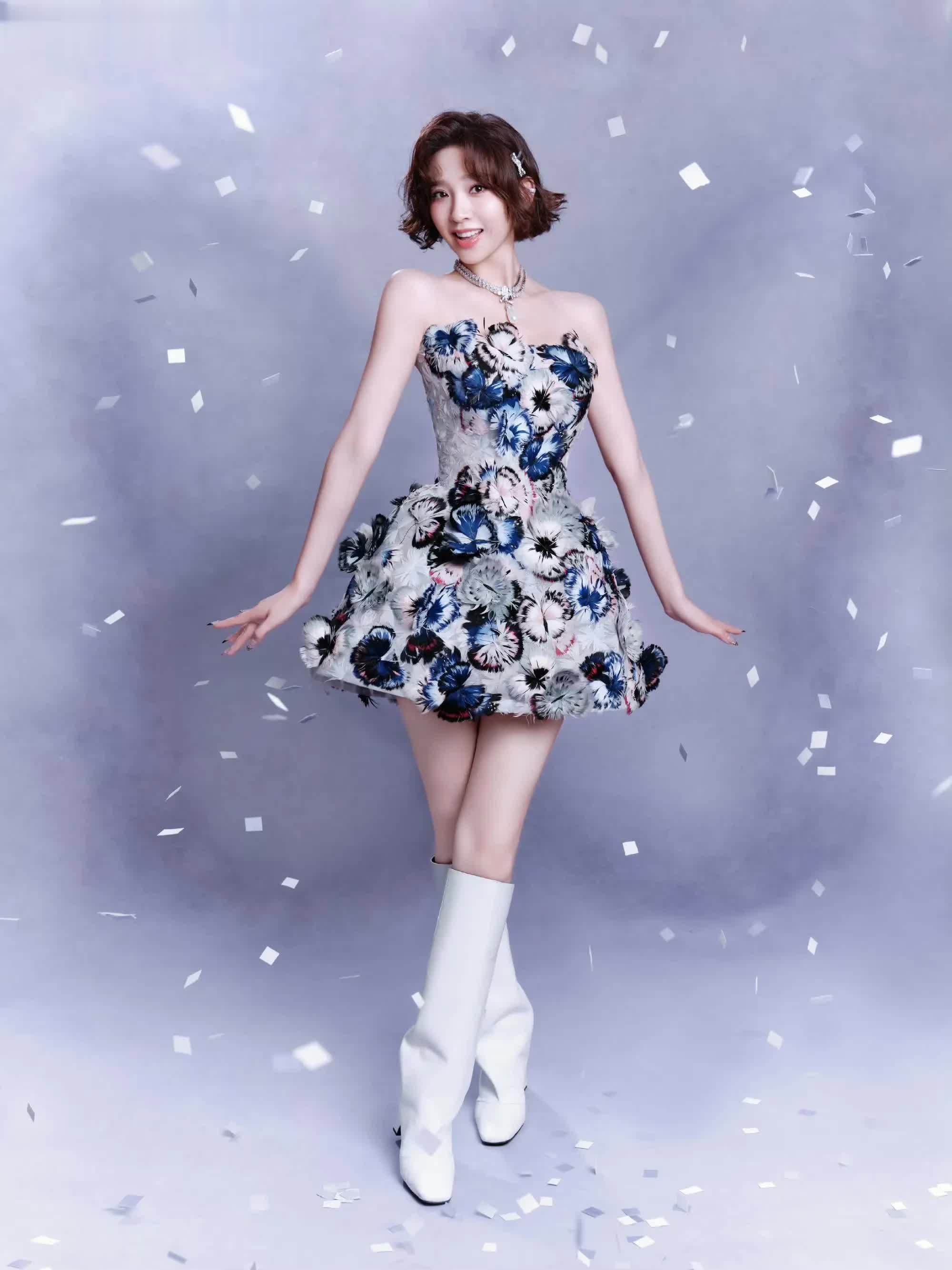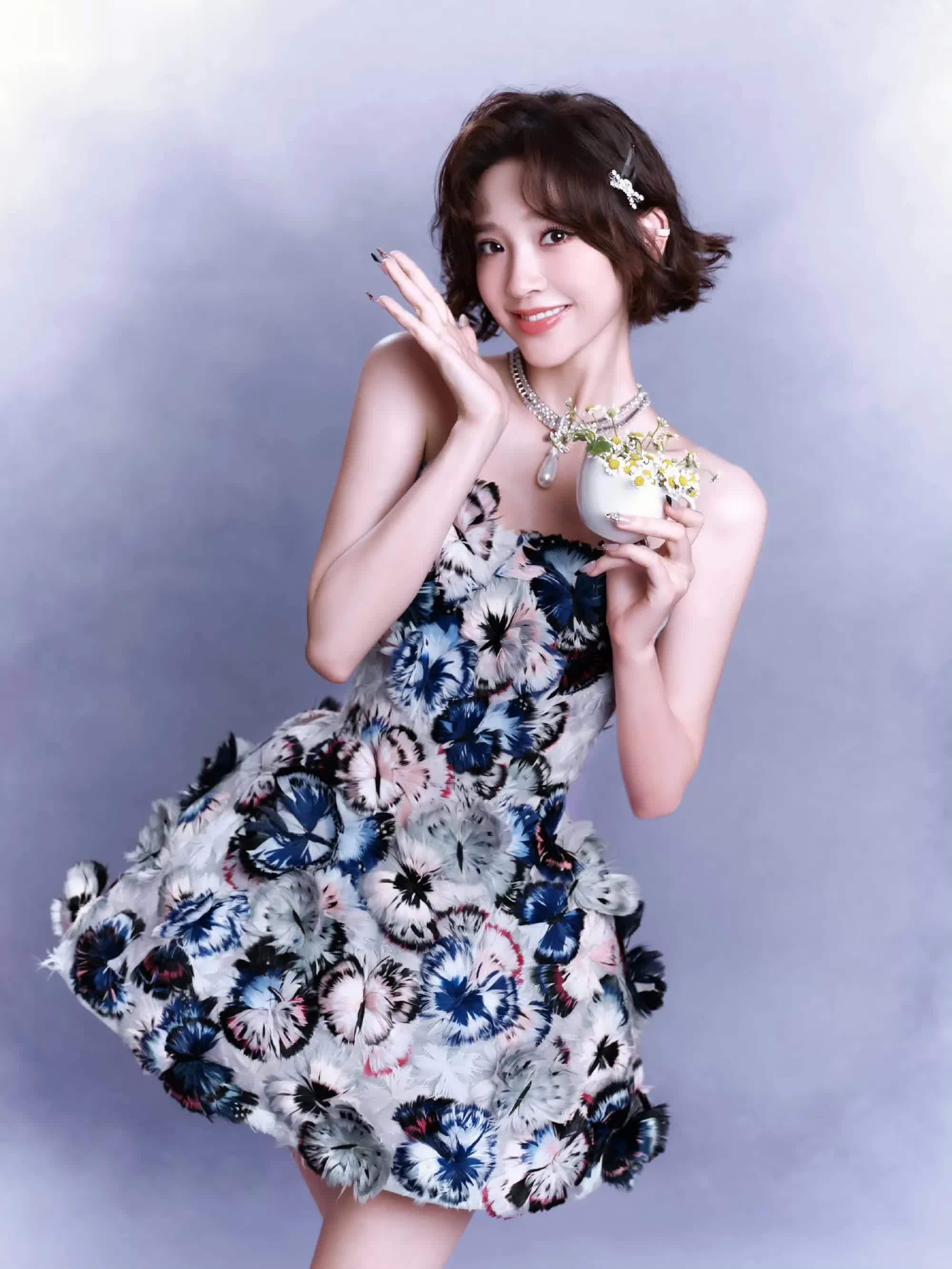 这次她穿了一件立体蝴蝶装饰的短款连衣裙,笑起来眉眼弯弯,美的让人移不开眼!
